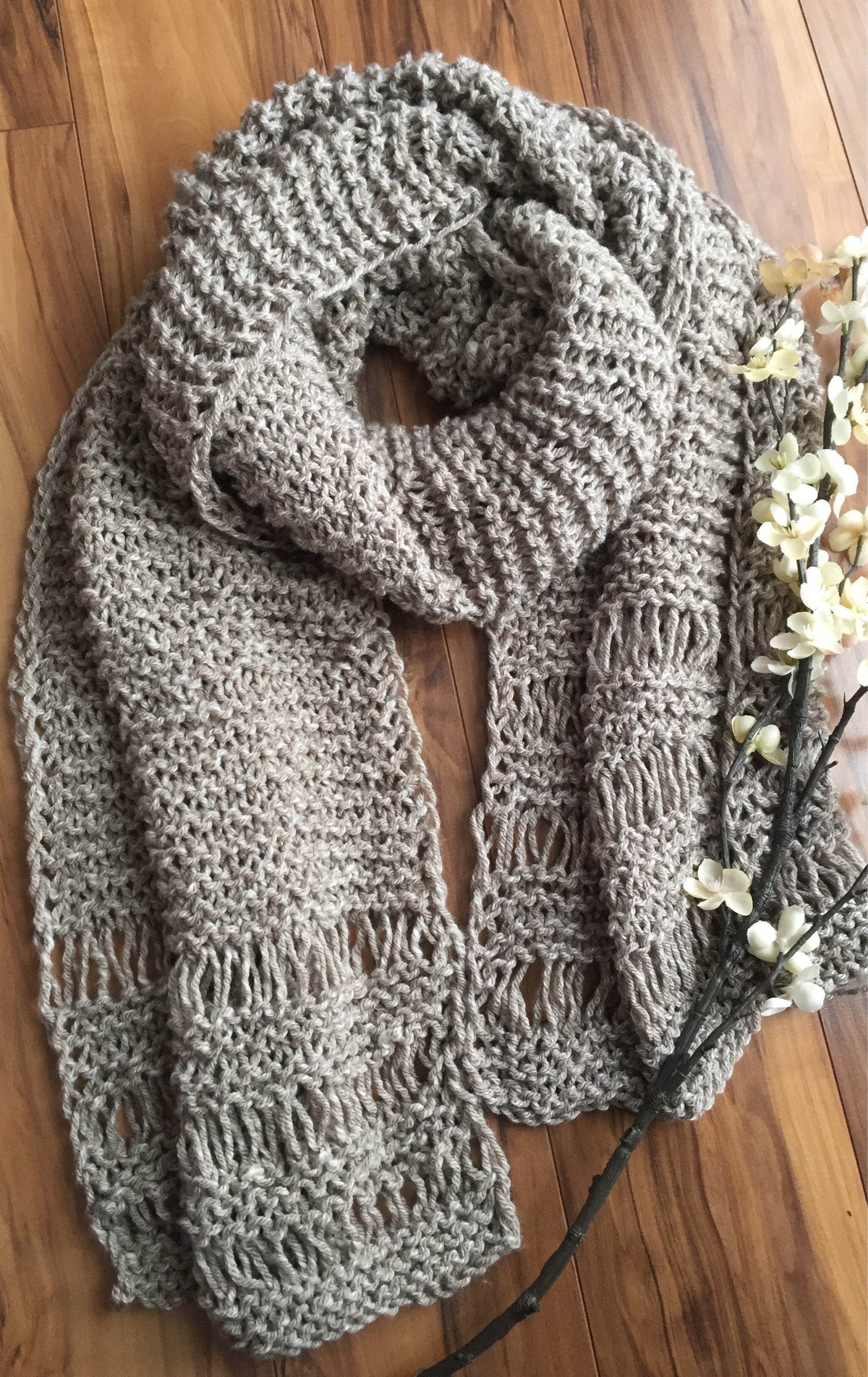 DIY KNITTING PATTERN All Seasons Scarf Hand Knitted Women's Oversized Chunky Boho Style Open End Neck Warmer Taupe