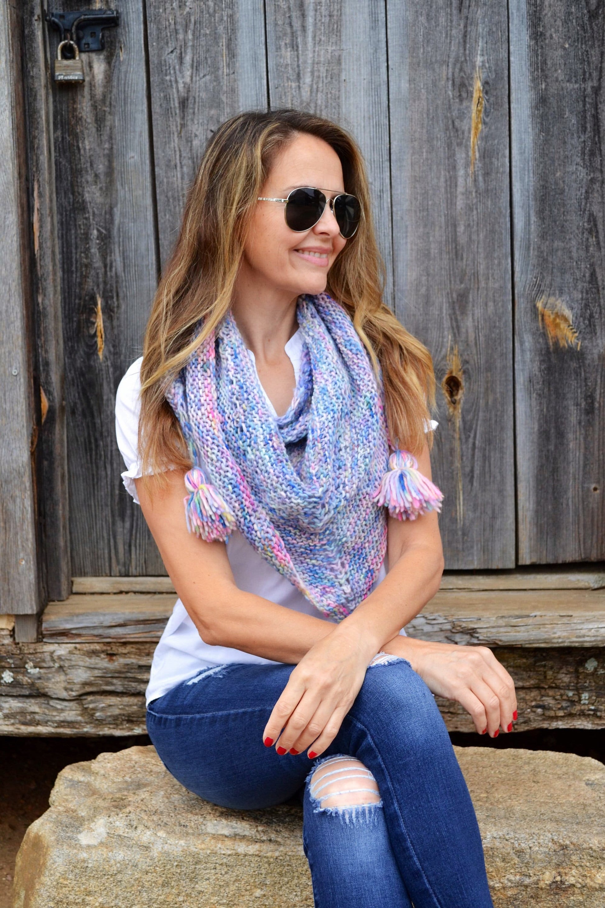 Knitting Pattern for Hand dyed Merino Triangle Knit Scarf by Rosehip Lane.