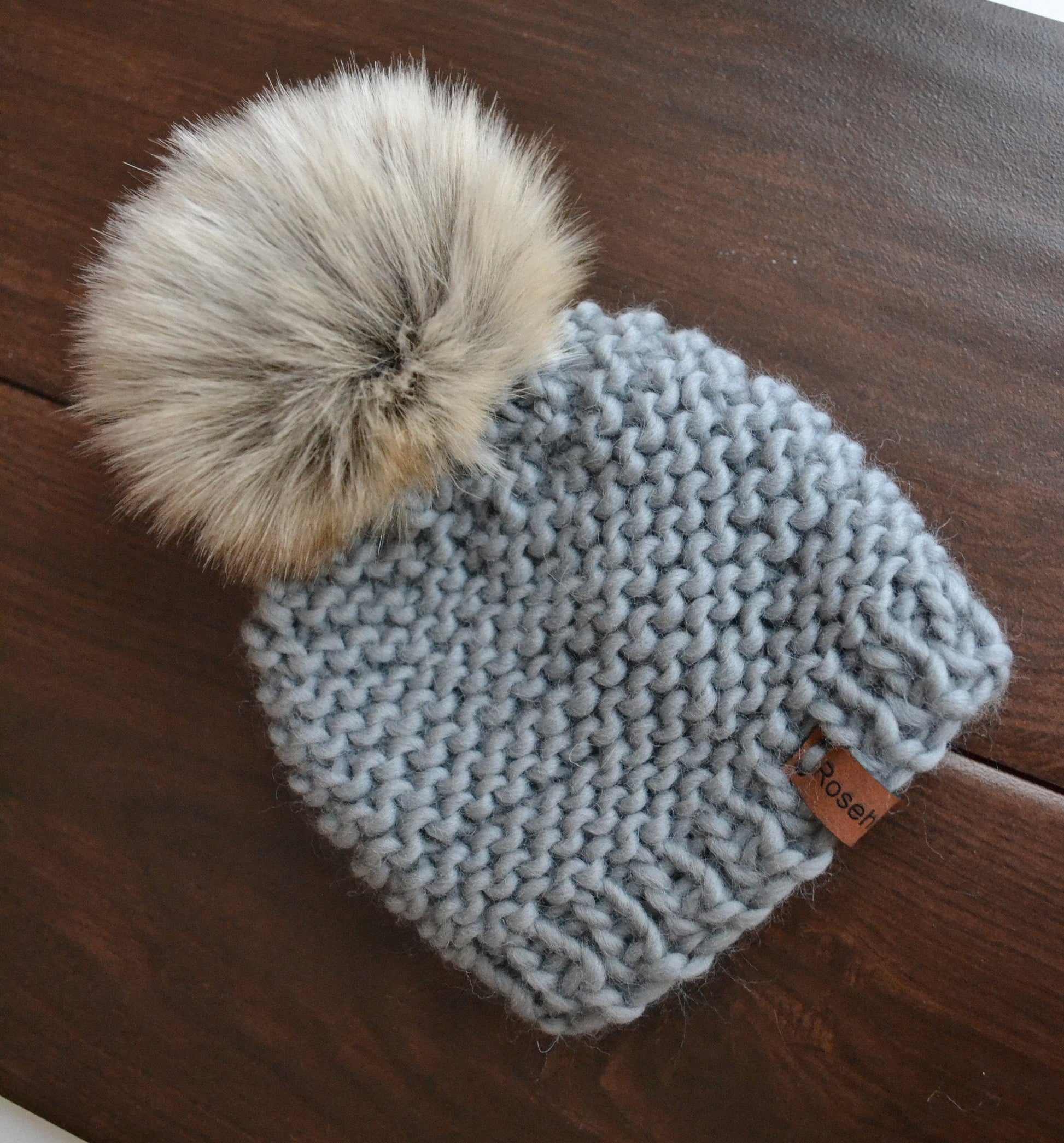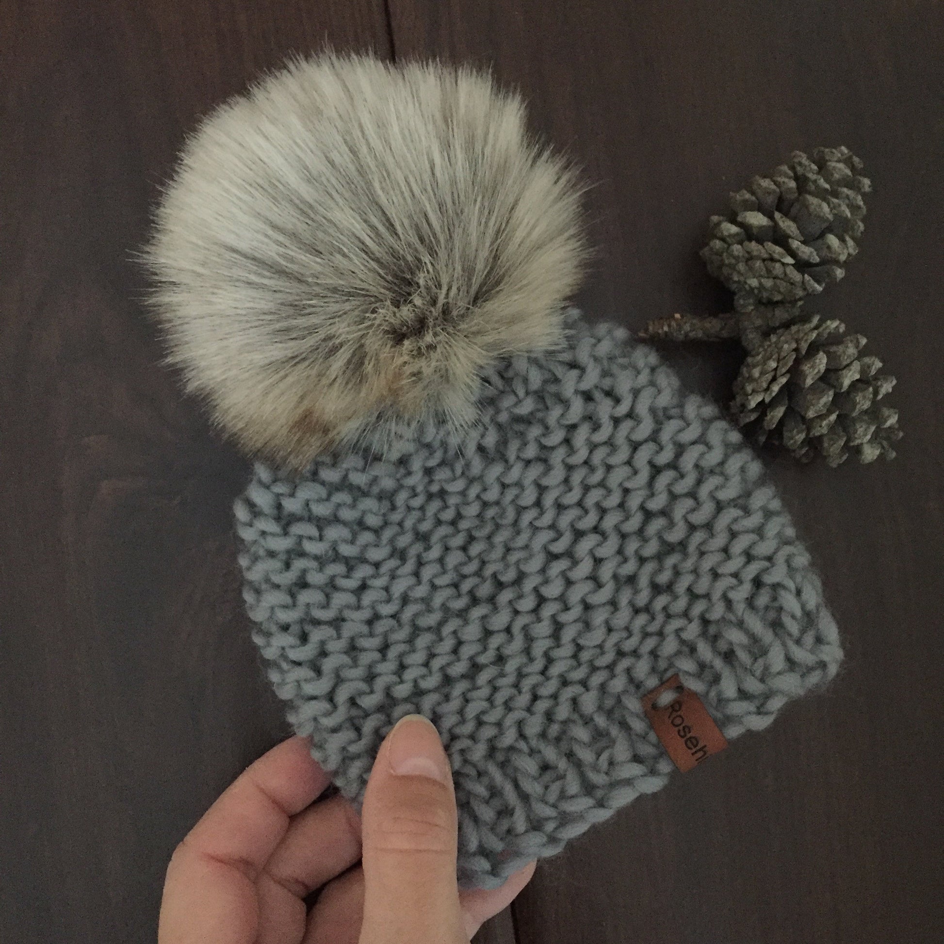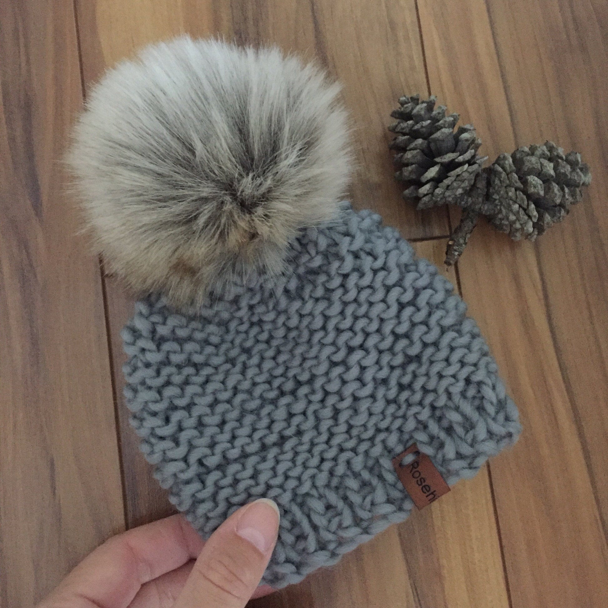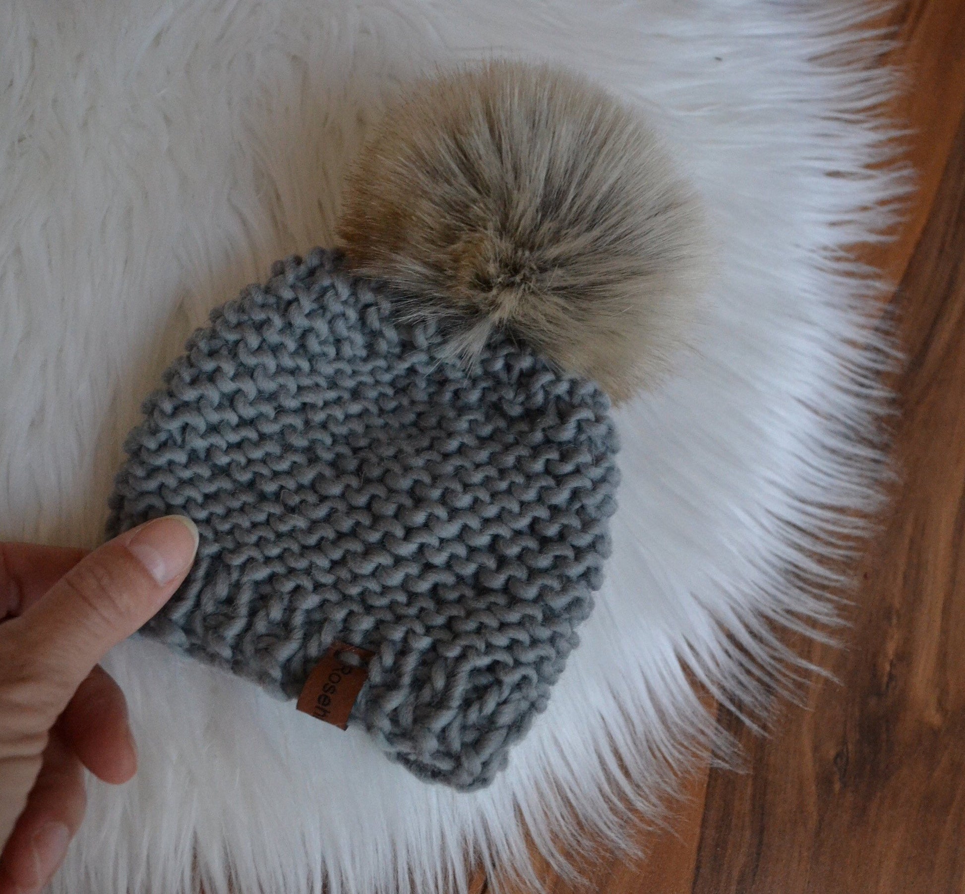 DIY KNITTING PATTERN Luxury Newborn Garter Stitch Faux Fur Pom Pom Beanie Hat Cap Toque Unisex We Are Knitters